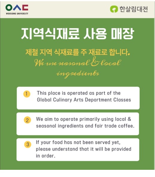 [솔반3] 에서는 대전지역의 신선하고 안전한 식재료를 사용한 요리를 제공하고 있습니다.