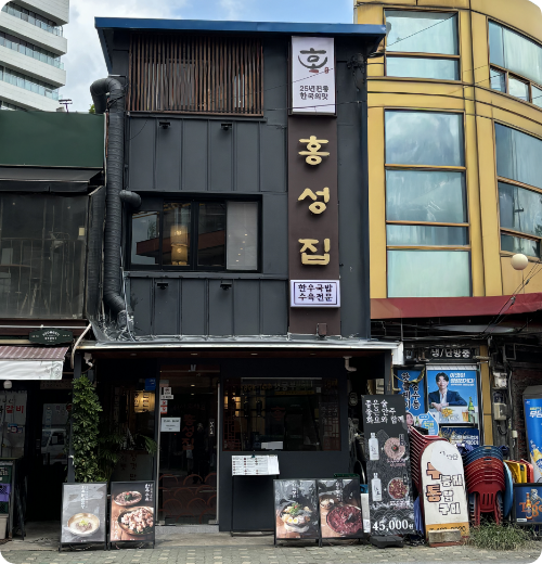 한우의 깊은 풍미를 제대로 느낄 수 있는 성수동의 숨은 맛집. 한우 장터국밥부터 육회비빔밥, 보양 소꼬리찜까지 폭넓은 메뉴 구성으로 든든한 한 끼를 제공합니다. 모든 음식은 정성스럽게 조리되어, 담백하면서도 깊은 맛을 자랑하는 것이 홍성집만의 강점입니다.