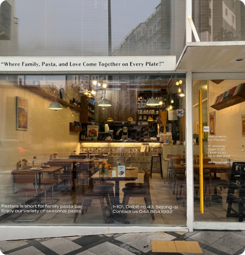 언제 어디서나 가볍게 즐길 수 있는 데일리 파스타 바 빠스타스의 시그니처 메뉴를 간편하게 경험할 수 있는 1층 공간